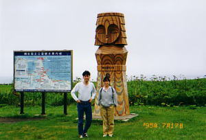 | 昨夜みんなに書いた絵葉書を層雲峡のポストから投函。一路網走方面を目指す。今日はあいにくの小雨模様だ。 サロマ湖に到着したが、夏とは思えないような寒さのためか、キェンプ場には人っ子一人見当たらない。なんだか物悲しさが漂っていた。失恋した時にでも来たら落ち込みから立ち直れなさそうだ。 キャンプ場内のトイレを借りようかと思ったのだが、カギがかかっていて使用できなかった。どうやらまだオープンしていないらしい。この寒さじゃ納得。 |