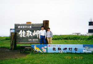 | 外の寒さにめげたみのりんは、網走の町でトレーナーを買うことを決意。網走の繁華街を目指した。車をコイン駐車場に停めてしばしブラブラ。スーパーのようなデパートのようなお店を見つけたので、そこで安いトレーナーを購入した。これで人心地つけるだろう。 次に能取岬に行ってみた。前に冬に来たことがあり、その時は岬から海を見下ろすと流氷がみたのだが、小雨まじりの今日は寒そうな海が広がっているだけだった。 |