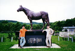 この日は、元競走馬の見学。まずは、「シンザン」に会いに。シンザンの牧場には、記念の像が立っている。いつまでも元気でいてほしいと願った。 ![]() シンザン像 放牧されていたシンザン 次に、西山牧場の「ニシノフラワー」に会った。この馬は牝馬で、現在ブライアンズタイムの子供を妊娠中。見学も慎重に。5分間だけ見せてもらった。この子もあと3年後には、きっと中央競馬で活躍することだろう。楽しみだね。 ![]() ニシノフラワー ブライアンズタイム ビワハヤヒデ 次にビワハヤヒデや、ブライアンズタイムを見学して、今日北斗星に乗って帰るO君を送るために札幌へ。O君は一度「北斗星」に乗ってみたかったらしい。 ![]() O君と別れた私たちは、一路函館を目指し、青森行きのフェリーに乗り、東北道をひた走りながら東京へ戻ってきたのだった。お疲れ様でした。 〜ついしん〜 その後、なくした免許証(通勤定期も入っていた)を再発行し、もちろん定期も買いなおして、臨時支出にブルーになっていた矢先、一通の封書が届きました。差出人は層雲峡のホテル。 中身はな・な・な・なんと!免許証ではありませんか! 同封されていた手紙にはこう書かれていました。 「お客様がお泊りになった部屋の、貴重品金庫の中のトレイの後ろに、この免許証入れが落ちていたのを、次の日にお泊りになった外国人のお客様が、フロントまで届けて下さいましたので、お送りいたします」 なんだ〜?ホテルに電話して、部屋の金庫の中を確認してもらったはずなのに!はは〜ん、きっと部屋まで行って探さなかったんだな。それなら封書で送る前に電話で連絡くれればいいのにい!何のために宿帳つけているんだ〜ちょっと考えれば分かりそうなことなのに!!! おかげ様で免許証再発行費と、定期代を無駄使いしてしまった┓(´_`)┏ まあ自分の確認ミスだと思いこみ、強引に納得することにしました。 |