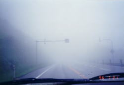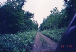 | 苫小牧のサイクリングセンターを出発するときには小雨が降っていた。 日勝峠では、濃いキリのため10m先が見えない。真っ白な世界だ。 |