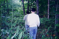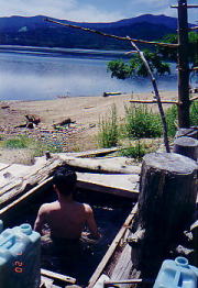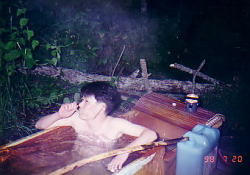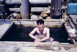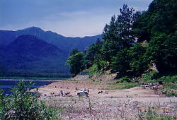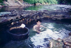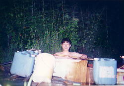 日の出と共に午前4時起床。早速行動開始。 ユウヤンベツ川で釣りを楽しもうと思ったのだが、川沿いに降りてすぐにみのりんのウェーダーの底が壊れてしまって断念。 露天風呂めぐりに切り替える。 管理事務所のおじさん。昨日もらった地図を頼りに露天風呂を何個所かまわった。早朝だし、誰もいないので気持ちよく朝風呂体験ができた。川の流れを見ながらの温泉は最高だ。 ![]() ヘカチの湯 メノコの湯 キヌプの湯キャンプ場に戻って管理の人と話をしていたら、観光客はめったにいかない温泉があるので連れていってくれることに。その名も「マクペカの湯」。菅野温泉でもらった地図にも記載されていたが… 林道を脇道に入り、行き止りで車を降 りて、あとは獣道を草木かき分けて進む。すると原生林に不釣り合いなバスタブ がある。見るときちんと蓋がしめてあり、お湯がチョロチョロあふれている。源泉がとても熱いので、そばにいくつか置いてあるポリタンクの水で薄めてはいるという。使用したポリタンクには源泉をいれておくのがこの温泉のルール。こう しておけば次の人がまたうめてはいれるという仕組みだ。地元の人が大切に守っているのだ。 マクペカの湯へ向かうしかし昼間はアブが多くて入れず、夜あらためて来ることにしてその場を去った。 その後はユウヤンベツ川や糠平湖で釣りをしたり、さわと温泉(糠平湖を見渡す無料露天風呂)や幌加温泉に入ったりして楽しんだ。 ユウヤンベツ川での釣果 ![]() さわと(熊谷)温泉 糠平湖を望む ![]() いい湯である 糠平湖畔、味の番外地食堂で 幌加温泉 ラーメンを食す。 ![]() 男湯は硫黄泉 こちらは女湯で食塩泉 しかし夕方になって雲行きがあやしくなってきたので急いでキャンプ場まで戻り、雨に備えてタープを張った。危機一髪 、張りおわったとたんに雨が降ってきた。夕立のようだ。 ランタンの下で夕食を終える頃には雨も上がった。 ランタンの下で旅の記録本日最後のメインイベント。昼間連れていってもらったマクペカの湯に入るため、 真っ暗な獣道を懐中電灯片手に進む 。 懐中電灯以外の光は全くない。静寂という恐怖が全身を包む。心臓のドキドキという音が聞こえそうだ。昼間は管理人さんと一緒だったのでほとんど恐怖はなかったが、やはり闇は怖い。 熊笹を掻き分ける音だけが響く。 ![]() マクペカの湯 昼間来た時よりも少し遠く感じたがどうにか到着。 お湯は相変わらずコンコンと湧き出ていた。ポリタンク3本の水をいれて、湯加減は最高! 恐怖心が先にたってゆっくり入っていられなかったけど、すごく貴重な体験だった。こんな人工の光も届かないような山奥で、しかも夜中に温泉に入っている自分の不思議さを思った。 でもやっぱり恐かった。 |