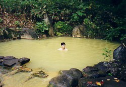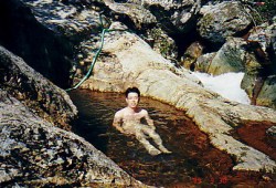 昨日料金を払わないで泊まった罪悪感から、人が来る前に撤収だあ!!!っていう勢いで、7時には出発。ちょっと霧雨も混じってきた。道の駅「ニセコ」でお湯を沸かして朝食を取ることに。 早朝の道の駅って、ほんと道外の車が多いこと。ちょっと見ただけでも、「奈良」とか「名古屋」とか。それに不思議なことに、熟年カップルが多いんだよね。ライダーはもちろん若いお兄ちゃんがほとんどだけど、車で来ているのは、大抵熟年のみなさま。水場で歯を磨いている人や、私達みたいに、お湯を沸かして朝食を取っている人など。きっと道の駅に泊まったんだろうなって話をしていたんだ。ワンボックスやキャンピングカーが多かったよ。 さて、ニセコに来た目的は、「温泉が多い」ってこと。どの温泉にチャレンジするか検討した結果、「薬師温泉」に決定。時間が早いので、日帰りは入れてくれないかも。って不安があったんだけど、到着してみると、プレハブをつなげたような造りの湯治場っていう趣。自動販売機で300円の券を購入して中に入ると、受付には誰もいなくて、ザルが置いてある。 「券はココに入れてください」って書いてあった。おそるおそる「湯→」って方向に進む。ちょっとギーギーって音を立てる廊下を進むと、左右に2種類の湯船。脱衣所は男女別で、中は混浴。幸い誰もいなかったので、のんびり入ったけどただお湯が沸いているとこを、木枠で囲いましたって感じで、湯船の床は大きな石があったりしてデコボコしていた。もちろんシャワーなんてないし。お湯はちょっと茶色がかって、サビた感じのにおい。 最近こういう感じの温泉じゃないと満足できなくなっている自分が不思議な気がした。旅館の温泉は、確かにきれいだし、広いし、好きなんだけど、こういう昔ながらの湯治場ってとこもいいんだよね〜。「こんな汚らしいとこ」って言われそうだけど、そこがたまらなくGOOD。 もう一個所の内湯は、小さめの湯船だったけど、ちゃんと男女にわかれていた。って言っても、湯船はひとつで、真中に木枠があって、向こう側が見えないようになっているだけだから、男湯に入っている人の「足」は見えたよ(^^ゞ声は当然聞こえるから、数人入っているのがわかった。 その後、飾ってある色紙を見ていたら、テレビチャンピオンで「温泉王」になった人とかも来ていて、「露天風呂が最高!」ってコメントが書いてあったから、掃除をしていた宿のお姉さんに「露天風呂はどこですか?」って聞いたんだ。だってそれらしいのは見あたらなかったから…。 そうしたら、「外に出て、駐車場の向こうのスギの木の脇の小道を入ったとこにありますよ」って教えてくれたので、早速いってみた。普通、「露天風呂→」とか書いていそうなもんだけど、何にも書いていない。聞いたとおりに行ってみると、ありましたよ!すごい露天風呂が! 薬師温泉露天風呂木々に囲まれた森の中に、まっ黄色な湯船が!「うわーすごい!」って思わず叫んでしまった。仙人でも出てきそうな雰囲気だった。「薬師温泉」っていうくらいで、すごく効くらしいんだけど、この色をみただけでも効く!って確信してしまった。お湯は少しぬるめ。湯船はけっこう広い。この温泉もお勧め!今度是非行ってみて! 最高の温泉に入って気分もよくなり、道南を目指す。 次の目的は、去年「熊出没のためこの先立ち入り禁止」ってことで入れなかった、「平田内熊の湯」。幸い今年は立て札がなかったので、駐車場まで行くことができた。 この頃になると、朝方の霧雨がウソのように青空が広がって暑いくらい。タオルを持って温泉に向かうと熟年のカップルがやってきた。「温泉最高だよ!今誰もいないからゆっくり楽しんで!」って言われた。 わくわくしながら渓流沿いの温泉に到着。想像していた通り、最高の温泉。ここは無色透明。ホースで川の水をくみ上げているから、お湯の温度も適温。丁度ちょっとした滝のように流れる川を望みながら、またまた最高の温泉を満喫したよ。ここもお勧めだよん。 平田内熊の湯その後、道の駅天和台のレストランで「ウニとじ丼」(カツ丼みたいなタレにウニがたくさん入っていて、卵とじみたいになっている)と「海鮮ラーメン」で昼食を楽しんで、松前方面を目指す。 道の駅ルート229天和台、北緯42度碑いつも南の方は通過点になっちゃうからたまには回ってあげようってことで。それに道の駅も数カ所あるから、全部回る気合で!! 最後にスタンプラリーのハガキを応募しなくちゃいけなかったから、どうしても道の駅の開いている時間に行かなくちゃいけない。松前から函館を過ぎて道の駅「えさん」で応募しようってことになったんだけど、函館市内の渋滞に巻き込まれて、時間は既に午後6時。「えさん」の営業時間は午後7時までって書いてあるから、ギリギリ間に合うかどうかってとこ。相方は不機嫌になるし、「欲張らずに1つ前のとこで応募すればよかった」とかブツブツ言って