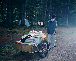 早朝から鹿の湯を満喫して一息ついてから撤収作業。キャンプ場に用意されているリヤカーに荷物を乗せて、駐車場まで運びます。 撤収中、ポツポツと雨が降り始めたので急いで駐車場へ。車に荷物を運び込んだところで、本格的な雨になりました。 危なかった〜。もうちょっと遅かったら、荷物も体もビチョビチョになるところでした。 撤収中朝7時、さー出発です。今日は一日雨の予報…。ん〜どこに行こうか? 南富良野の道の駅まで来たところで一休み。今夜のことについてみのりんと相談です。 し 「今夜はどうしよっか〜。雨が止みそうにないよね…」 み 「ん〜。これだとまた雨がしのげるような屋根のあるキャンプ場を探すか安い宿に泊まるしかな いよね〜」 し 「そろそろ疲れたことだし、安い宿を探して泊まろうっか。」 み 「どのあたりにする?」 し 「やっぱり温泉のあるとこがいいよね〜」 インターネットで探してきた魅力的な温泉のリストを眺めながら考える…。 し 「やっぱりニセコのあたりだったら、宿が多そうだよ。安いとこだと6000円くらいからかなあ。」 み 「前に日帰り入浴で利用した、大湯沼のとこにある『雪秩父』って国民宿舎はどうかな?温泉 の種類も豊富だしさ。」 し 「じゃあ、空いているか電話をしてみよっか」 …てな感じで決定。電話をしてみると幸い空いているとのことだったので早速予約。これで今夜の寝床は確保でしたし安心、安心。富良野を出発して、雨の中ニセコ方面を目指すことにした。 お昼を過ぎた頃、道の駅大滝に到着。ここは、1億円かけたトイレがすごかった。トイレが建物の一番奥にあるので、数あるお土産屋さんの前を通っていかないとたどり着けない。 この辺はよく考えているよね。手前にあると、トイレだけ利用して帰っちゃうけど、トイレ行くまでにお土産屋さんがあると、ちらっと帰りに覗いちゃうもんね〜。 トイレは廻階段を下りて行ったところにあり、前にはグランドピアノが置いてあって自動演奏されていてすごくいいムード。トイレの個室も1つ1つが大きくて、中に手を洗う場所があったりしてすごくリッチな作り。これじゃあ1億くらいかかりそう…。納得。 トイレから出てきて、みのりんの姿が見えなかったので、私の方が先だったのかなあと思い、椅子に座ってのんびりピアノの自動演奏を聞いていました。 しばらくするとみのりんが階段の上から顔を出して「何やってるの?」なんてちょっと怒り気味。先に出てきていて、上で待っていたみたい。まあ、みのりんは怒り気味だったけど、私はのんびりピアノ演奏が聞けたので大満足でした。(^^) その後、ふたりでお土産屋さんを冷やかしながら、おもしろいものを発見。それは、塩辛とかを入れるようなビンに入っている白っぽいドロッとした油。何かな?と近くまで寄ってよく見ていると「馬油」って書いてある。 どうやら万能油らしい。 ご自由にお試しくださいって、1つビンが開いていたので、早速みのりんが、キャンプや温泉でガサガサになった手につけてみました。においは無臭に近いけど、やっぱりちょっと油っぽいにおいがする。 みのりんは毎年冬になると手の先がガサガサになって、ひどくなると縦に裂けたりするのでクリームには苦労している。(私は面の皮と同様手の皮も厚いので、何もつけなくても全然大丈夫なんだけど) しばらくおみやげを見ていると、みのりんが、「さっき馬油をつけた手がツルツルしているよ」って驚いているので、触ってみると、確かに効果ありそう。これは、高いクリームを買うよりいいかもねって言って、1ビン千円の馬油を早速購入しました。これは帰ってきてからも寝る前につけているようです。 さて、その後、お腹の減った二人は、きのこ汁1杯100円という看板につられて売店へ。 そこには他にもきのこ天丼とかの丼ものもあったのできのこ汁と、豚丼を注文。豚丼も500円だけど、お肉が5枚も入っていてちゃんと炭で焼いてくれていたので、すごくおいしかった。満腹。満足。 さてさて、お腹も一杯になったことだし、今夜の宿のあるニセコを目指しましょ。 ニセコの近く、真狩村は、羊蹄山の湧き水がおいしいところ。去年も汲んだんだけど、今年も寄ってペットボトルと水筒にもらいました。すごく冷たい。 羊蹄山の湧き水近所のおじさんみたいな人は、軽トラックに何十本ものボトルを持ってきていて、とにかくすごかった。運ぶだけでも大変そう(^^; それから真狩村は、細川たかしの出身地としても有名。細川たかしの像もあってヒット曲を歌ってくれるっていうので、寄ってみることに。 雨もやんできたんだけど、像のとこまで行くと張り紙が…。 「細川たかし像は、夏風邪をひいて声がでなくなりました。」だって。 残念だけど、ヒット曲は歌ってもらえませんでした。像と同じポーズで写真を撮ってその場を去りました。 今夜の宿「雪秩父」は、湯本温泉にあり裏には大湯沼というお湯が沸いている沼もあります。