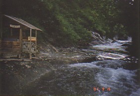 この日の函館は曇り。 ここ数年、上陸するのはいつも苫小牧だったから、久々に函館から北上するルートをとったけど、長万部のあたりは長いねえ。けっこう疲れた〜。と言っても、私は助手席で必死に睡魔と戦って、みのりんに「白目出てるよ」と注意されてばっかりいたんだけどね(^^; だってまぶたが落ちてこないように必死で目を開けようとすると、白目出ちゃうんだもん。みのりん曰くこの世のものじゃないくらいすごい顔しているって。 これでも必死にがんばったんだけどねえ。(^^; 途中洞爺湖のあたりを通った時、まだ白い噴煙がモクモクとあがっていたよ。 「洞爺湖サムス道の駅」で休憩。ここで小粒のリンゴ8個を300円で購入。昔懐かしい甘酸っぱさでシャキシャキしてすっごく美味。前にもここで買ったことがあって、お気に入りなんだ。皮ごとかじるのがこれまたたまらないんだよねえ。ふっふっふ。 それから洞爺湖付近、川沿いにある無料露天風呂「おさる湯」へ。 ここもワイルドな温泉って情報だったから楽しみにしていたんだけど、なんと!数日前の台風の影響か、川が増水していて水没してた。かろうじて湯船になっているらしき石のくぼみは見つかったけど、手を入れてみても冷たかった。これでは無理。残念だけどあきらめました。 次回に期待ですう。 ![]() オサル湯 残念ながら川の増水で湯船水没中・・・・。次回に期待! そして洞爺湖から夕張を経由して鹿追まで。夕方日が落ちるまでにはテントを設営したかったので、今夜は大好きな「然別峡野営場」に決定。本当は鹿追の「神田日勝記念館」に寄りたかったのだけど、ゆっくり見る時間もなかったので、みのりんと相談して次の機会に行くことにした。 その代わりに近代的な温泉「清水温泉フロイデ」で汗を流すことに。 ここは、何度かチャレンジしてみたんだけど、営業前の時間だったりお休みの日だったりして、タイミングがあわなかったところ。今回遂にGet!洗い場も広いし、露天風呂もあるし、なかなかよかった。ちなみに入浴料は一人380円也。 しみず温泉フロイデお風呂でのんびりした後に、鹿追の町にあるスーパーで今夜の夕食の材料を購入。夜は結構冷え込みそうだったので、「海鮮キムチ鍋」に決定!材料がまとめて入っているセットがあったので、それだったら準備も簡単だしね。然別峡野営場には17時に到着。ちらほらと先客がいる程度でなかなかいい感じ。奥の炊事場の近くにテントを設営。 野営場の駐車場に軽ワゴン車がとまっていて、中年のご夫婦が近くで自炊していた。 話を聞くと、8月の中旬に熊本からやってきて、いろんな山を登っているんですって。すごくタフ。でも今年はかなり雨が多かったので、1週間くらい同じ宿に泊まってお天気になるのを待っていたりしてたとか。今日は久々に晴れたので然別近くの山に登ってきたとのこと。山頂近くは紅葉していてすごく綺麗だったと興奮してました。そして下山後、菅野温泉に泊まろうと思っていたら、満室で断られたって。菅野温泉は人気あるから平日でも混んでいるんだよねえ。それでしかたなく、キャンプ場の駐車場で一夜を過ごすことにしたそうです。管理人さんは、駐車場で自炊するんだったら、トイレや炊事場はタダで使っていいですよってやさしく言ってました。さすが北海道〜。 そんな世間話をしながら夕食の準備。そして「鹿の湯」三昧。体もぽかぽか温まってから夕食タイムになりました。夕食を食べていると、まずはライダーが一人やってきた。 「スイカを1つもらっちゃったんだけど、一人じゃ食べきれないんで もしよかったら少しどうぞ」 って。もちろんありがたくいただきました。(これは、後で鹿の湯に入りながらいただきました。タネは川へ飛ばしながらね。)そしてその後は、野営場入り口の普通のサイトとは少し離れたところにテントを張ってアフリカの大きな太鼓みたいのをたたいていた男女5人のメンバーの一人がやってきた。 「ざるありませんか? パスタをゆでたんですが、ざるを忘れちゃって」 というので、水切りの荒い目のザルを貸してあげました。 「太鼓うるさくないですか?もしよかったら後で遊びにきてください」 といいながら去っていきました。 夜9時頃まで、ぽんぽこ音がしていたけど、昨日からほとんど寝ていなかったので、夕食後また鹿の湯に入った後は、遊びに伺わずに、即効で寝袋にもぐりこんじゃった二人なのでした。 そしたら・・・・・・!! 夜11時を過ぎた頃に目がさめてしまった!。なんとそんな時間から、私たちのテントの隣にテントをたててるグループが!!男2〜3人と女性2人くらいの様子。(声だけだから正確な人数は分からず)大声であーでもないこーでもないとテントを設営した後は、ガラガラトタバタと音をさせながら食事の準備をしているし。外に出て注意したいのをぐっとこらえて我慢して眠りにつきました。疲れていたのですぐに寝られたけどね(^^; そんな感じで2001年北海道の
