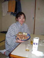 9月24日 朝から温泉を満喫して、たらふく朝食を食べて出発。相方が、帯広の六花亭のサクサクパイがもう一度食べたいというので、どうせ通り道だし、寄ってみることに。帯広に着いたのが9時だったのでまだ開店していないのかなって思っていたが、9時開店でラッキー!!さっそくサクサクパイを購入。今回は欲張って5本入りを買ってしまった!!朝ご飯をたらふく食べた後だというのに、早速1本をぺろり。やっぱおいちい。残りは、三時間のうちに食べましょう。 ![]() 次に、豊頃町にあるハルニレの木を見にいくことにした。ハルニレの木は河川敷の広い草原の中にぽつんと立っている。手前と奥に2本あり、兄弟といわれているらしい。樹齢120年以上と言われる銘木は、もともとは2本の木だったものが、1つになったことから「夫婦の木」とも言われている。青空に映えてとても美しく立派だった。(日立のこの木何の木気になる木〜の初代だという噂があったが、どうやらデマらしい) 豊頃町から海沿いに出て海岸線の国道を走る。三石の道の駅で去年食べたつぶめしがおいしかったので、今年も買うことに。道の駅で探したのだが見当たらない。店員さんに場所を聞いたらありました。残り2つ。毎日数量限定なんだそうな。二人でひとつを買って半分こして食べた。(サクサクパイのおかげでお腹が減らない(^^;) 今夜どこに泊まるか検討し、白老付近の虎杖浜温泉で温泉フリークには評判の民宿500マイルに電話。予約OKとのことだったので、安心してフンベ海浜温泉に向かった。フンベ海浜温泉は、崖の上にあるという情報で入り口がわかるかどうか不安だった。登別の駅から海岸沿いに出て、工場の裏手あたりにあるらしい。ここかな?と目星をつけた所に車が一台停まっていたので隣に停めて、立ち入り禁止の看板から坂を登ってみた。海が見渡せる崖の上に出たら、ありましたよ。オンボロの小屋が!! ![]() この立入禁止の看板から入る 崖の上に小屋が! きっとここに違いないと思い、小屋を覗いてみました。おじさんが一人着替え終わるところで、聞いてみたら間違いなく温泉だった。早速入浴。もう一人地元のおじさんが入浴中だったが、一緒に入らせてもらった。茶褐色のお湯でやはり海が近いせいか、かなりしょっぱい。それにしても波の音がすごい。風が強いせいもあるのだろうが、ザッブーンっとすごい音を立てている。非常に怖かった。でもいいお湯です。 ![]() フンベ海浜温泉 今夜の宿、民宿500マイルには、内湯が2つと露天風呂がある。どちらも内側から鍵をかけてゆっくり入れるとのこと。露天風呂は使用中だったのでまずは内湯をのんびり楽しんだ。 お風呂から上がってみると、テーブルの上に毛蟹が1杯。お茶のセットと一緒においてあった。「これってお茶菓子代わりかな?」ってことで、風呂上がりのビールと一緒にまずは毛蟹を楽しんだ。6時を過ぎると、おかみさんが部屋に夕食を運んでくれる。イカしゃぶに、イカの肝焼きに、茶碗蒸し、シャケにお刺身と海の幸が並ぶ。みんなおいしかったっす。ごちそう様。 ![]() 民宿500マイル 毛蟹! 食事です さて食後は、露天風呂。この民宿は海から10mくらいしか離れていないのでやっぱり波の音が怖いくらい。でも漁火も見えたりして、最高のシチュエーション。真っ暗な海を見ながら、かなり長い時間お風呂に浸かってしまいましたわ。本当は、あともう1泊して帰ろうと思っていたのだが、前日にメールが入り相方が土曜日仕事になったので、明日の夜には北海道を後にすることにした。最後の夜をのんびり楽しみましたよー。やっぱり早く寝ちゃいましたがね。ぷぷぷ ![]() 夜の露天風呂 朝はこんな感じ 本日の走行距離402km |