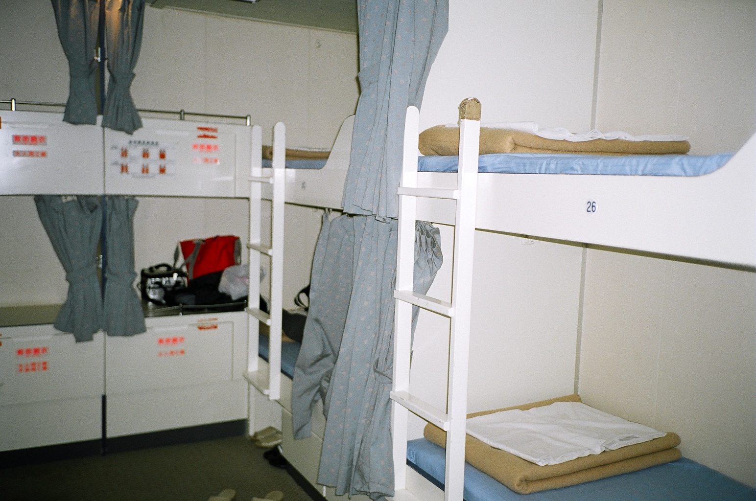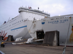 9月22日(木)〜23日(金) 今年は、初めて長距離フェリーを使っての北行き。 午前中仕事だった私は、相方に荷物の積み込みを任せて13時すぎに帰宅。 みのりんも午前中にタイヤのローテーションをしてきたりと結構忙しかった様子(感謝)。 ばたばたと荷物の積み込みをしていざ出発〜! ![]() 14時12分出発! 平日の午後のため、特に渋滞もなく、曇り空の下、大洗港へ到着。カーナビをセットしてきたけど、マリンタワーがそびえているので、迷わず来れます。到着したのは16:20すぎ。早めに到着したので所定の場所に車を停めてからゆっくり乗船手続き。インターネットで申し込んだので1割引でしたよ。既に支払い済みだったんで、印刷してきた乗船申込書を2枚窓口に出しただけで手続き完了〜。簡単ですわ。 ![]() これから乗るさんふらわーさっぽろ 乗船手続きの様子 相方は、小さい頃海洋少年団に入っていたくせに船が苦手。乗船前から結構緊張している様子。しっかり酔い止めの薬を飲んでいますわ。心配していた台風も来ていないので、海は穏やかだと思いますよ〜。大きな船だし、娯楽施設もあるのでのんびりできそうです。(と思っていたのは私だけ!?) ![]() 大洗港へようこそ!! 乗船開始が17時。スムーズに乗船。長距離フェリーは乗るときは、ドライバーと同乗者は別々なのです。同乗者は、空港で飛行機に乗る時のような長い通路を通って乗船します。今回は2等寝台なので、みのりんとは部屋で待ち合わせしました。車の乗り入れも早かったらしく、私が部屋に入って程なくして相方も到着しました。風呂好きな私たちは乗船後早速お風呂。 女性は誰も入っていなくて広い湯船で快適、快適。まだ出港前なので、のんびり楽しみましたよ〜。平日の明るいうちからお風呂なんて、し・あ・わ・せ(至福) ![]() 乗船後早速お風呂だあ! お風呂の後は楽しい夕食で〜す。フェリーのレストランは営業時間が短いのですよ。出港が18時半なのですが、営業は18時から19時半まで。お風呂に入った私たちは、18時すぎからレストランでバイキングを楽しみましたよ。ビールは持ち込んじゃいました(^^; 食事をしているとゆっくりとフェリーが岸壁を離れていきました。蛍の光が流れて旅情を盛り上げます。でも相方は船酔いが心配でそれどころじゃなかったそうですがね〜。 ![]() フェリーでのバイキング 相方は酔い止めバンドを装着! ゆっくりと夕食を楽しんで、結局レストランの営業が終わる時間までいました。20時からはシアタールームで映画の上映があるということだったので、二人で行ってみました。座っている人は数人。相方は上映後すぐに船をこぎ始めたので、部屋に戻って寝るように勧めましたよ。私は暇な時間をもてあましていたので、最後まで映画を観てました。これがすごいつまんない映画なんですよ。ベネチア映画祭とかに出品している日本映画なんで、娯楽映画じゃないんでしょうね。主人公は映画の終わる10分前まで一言も発せず、てくてくと歩いていました。その途中にいくつかエピソードがあるんですが・・・。観終わっても何だかわかんない映画でしたわ。高尚すぎて私には理解不能って感じですかなあ。ちなみに、「幸福の鐘」って題名でした。 ![]() 二等寝台はこんな感じ シアタールーム 二等寝台は、8人部屋だったんですが、二人で貸切でした。すいていてラッキーです。朝6時過ぎに起きたんですが、相方は軽くやばい状態が続いているようで、朝食はフルーツを数切れ食べただけでしたわ。私は欲張ってパンもご飯もいただいちゃいました(^^; ![]() 相方は食欲なしお 定時の13時半に苫小牧へ到着。曇り空。気温は22度。丁度いい感じです。今年も北海道へ上陸しましたよ〜!! 長距離フェリーで大洗からいきなり苫小牧なので、なんだかいつもより感動が少ない感じ。点と点で移動したからかな? 上陸して早速移動。今夜は十勝川温泉の宿を予約しているので気が楽です。今回は高速を使って夕張の方面へ抜ける道ではなく、日高方面から日勝峠を抜けるコースを選択。 途中、二風谷の「アイヌ資料館」に寄ってみました。アイヌ民族に関するいろいろなものが飾ってあるこじんまりとした資料館です。子供の頃に読んだ「ころぼっくる」を思い出しました。2階には各国の金属楽器や写真が飾られていたのですが、変な顔をした魚の標本があったので思わず前面から写真を撮ってしまいました。 ![]() コロボックルの家 変な顔の魚 なんだかんだと宿に到着したのは18時。あたりはすっかり暗くなっていました。今夜の宿は「はにうの宿」サイクリングターミナルです。名物は「くじら」ということで、夕食には、くじらベーコンとくじらの刺身が付いていましたわ。ただ、くじらベーコンはちょっと生臭くて、私の口には合いませんでした。残念。 ![]() はにうの宿の夕食 地ビールもいただきましたよ〜 夕食が終わって宿に向かえのバスが来るというので、「とかち大収穫際」の会場へ行ってみることにしまし