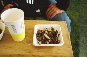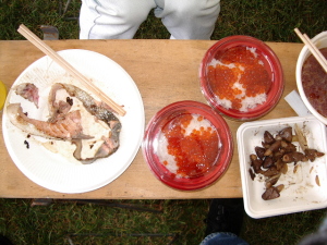 9月25日(日) 6時起床。隣のテント家族が朝早くから撤収を始めたようで、こちらも早くから目が覚めた。風が強い。気温はそう低くはないのだが、なにせ風が強くて寒いので、早々に撤収することにした。朝食も取らずに7時半に撤収完了し出発。すっかり体が冷えてしまったので、川湯温泉の公衆浴場で朝風呂。ここは朝8時からやっているのです。到着したのが5分前でしたが、番台のおばちゃんは快くOKしてくれました。 酸性のお湯は健在。飲むと強烈にすっぱいですわ。硫黄の香りもいい感じ。掛け流しの正しい温泉を満喫させていただきました。 ![]() 川湯温泉公衆浴場 さて、次の目的地は、「標津」です。本日秋アジ祭りが開催されるのですよー。ここは1500百食のいくら丼をタダで配るイベントがあるのです。数年前に一度チャレンジしたのですが、到着がちょっと遅れてしまったので整理券をゲットしそこなってしまったのでした。今回はリベンジだ〜! 9時40分に会場のサーモンパークに到着。臨時の駐車場まで一杯になっていました。すごい賑わいです。10時20分まで並んでいくら丼の交換整理券を2枚ゲット〜!実際にいくら丼が配られるまで30分程あるので、会場内のテントで、鮭そば(鮭の天ぷらといくらがたっぷり乗ったおそば)をまず購入。350円也。 ![]() 標津の秋あじ祭り会場 鮭そば それだけで満足する私たちではありませ〜ん。生ビールに、鮭の肝焼き(鮭の心臓とたまねぎを炒めたもの)と、サーモンステーキも堪能。いくら丼が配られる頃にはすっかりお腹も満腹になっておりました。でもおいしいのでいくら丼もぺろり〜。そうしたら隣に座った地元の漁師ご夫妻が、「折角東京から来たんだからもうひとつお食べ〜」っていくら丼をくれるじゃあ〜りませんか!本当は既にお腹一杯だったんですが、二人で半分づっこして完食しましたよ。ありがとうございました。おいしかったですう!! ![]() 鮭の肝焼き いくら丼 またまた満腹、満足な私たちは昼過ぎに秋あじ祭り会場を後にしたのでした。 次に向かうは、80キロ離れた厚岸!毎年楽しみにしている厚岸のカキを買いにいったのですわ〜。 しかーーーーーーーーーーーーーし!!!! なんということか! いつもならスーパーの入り口で売っているカキがどこを見ても見当たらないじゃアーーーーーーりませんか!! なぜ? なぜ? なぜだあ!! しかたなくキムチ鍋の材料を購入してとぼとぼと80キロの道のりを尾岱沼キャンプ場へと戻ったのでした。 東京に戻った日の夕方のニュースで知ったのですが、厚岸のカキは稚貝が全滅して壊滅的なダメージを受けているとのこと。そういうわけで売ってなかったのだと納得したのでした。とほほのほ・・・。復活してほしいと思います。 ![]() 今夜は尾岱沼のキャンプ場へ宿泊。ただし明日はサーモンフィッシングの予定なので朝4時には出発しないといけない。そこでテントは設営せず車の中で寝ることにした。さらにテーブルやら椅子やらを準備するのも大変なので、風の避けられるバーベキューハウスを借りての夕食となります。まずは浜の湯で体を温めてからキャンプ場へ戻ってきましたよ。 ![]() バーバキューハウス 定番のキムチ鍋であったまりますわ 早めに食事を終わらせようと思ったのですが、結局後片付けをして寝たのは21時。でもふとんに入ると即効で眠りについていましたわあ。明日は6年ぶりのサーモンフィッシング。釣れるといいな〜。 |