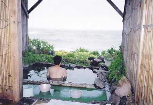 内湯、露天共に貸切に出来る。目の前に海が広がり気分が良い。