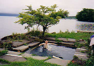 まだ有名になっていない。屈斜路湖のほとりに小ぢんまりと湧く露天風呂。湯温も申し分無くロケーションも最高である。後ろの木がワンポイントだ!