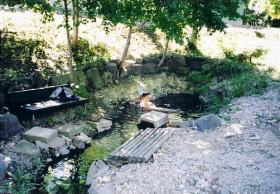 川沿いに小屋があり、掛け流しの湯があふれている。脱衣所も露天風呂も綺麗に掃除が行き届いており、気持ちよく入浴できる。