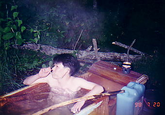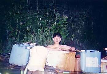 林道から道なき道を100mくらい入る。近くに水源はない。林の中にポリ浴槽がおいてある。熱いので入浴する時はポリタンクの水で薄め、からになったポリタンクに温泉を入れておき、次の人が使えるようにしておくのがルール。今でもあるのかは定かではない。
