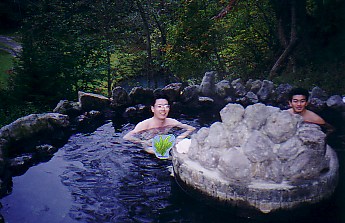 国道241号を足寄から足寄峠に向かい、オンネトーから徒歩で20分ほどで到着。広場から階段を上った高台に混浴の露天風呂がある。男女別ではないが脱衣所も完備されている。