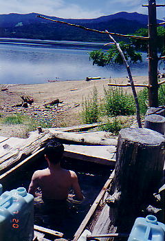 国道273号線の糠平湖から糠平三俣林道へ入り、湖の外周を走り約10kmで到着。上記の写真は97年に訪れた時のもの。現在湯船はすべて撤去されており、源泉だけが沸いている。幻の温泉となってしまった。