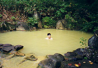 国道5号、昆布川温泉付近から3km程度入ったところにある一軒宿。混浴の内湯と男女別の内湯があり、少し離れた所に露天風呂がある。いかにも効能がありそうな色をしている。露天風呂は夏でも少しぬるめ。