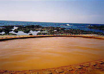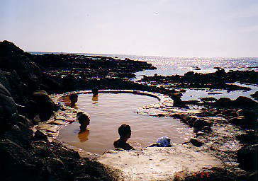 食塩泉だけあってしょっぱい。海岸を散策する人からは丸見えです。
